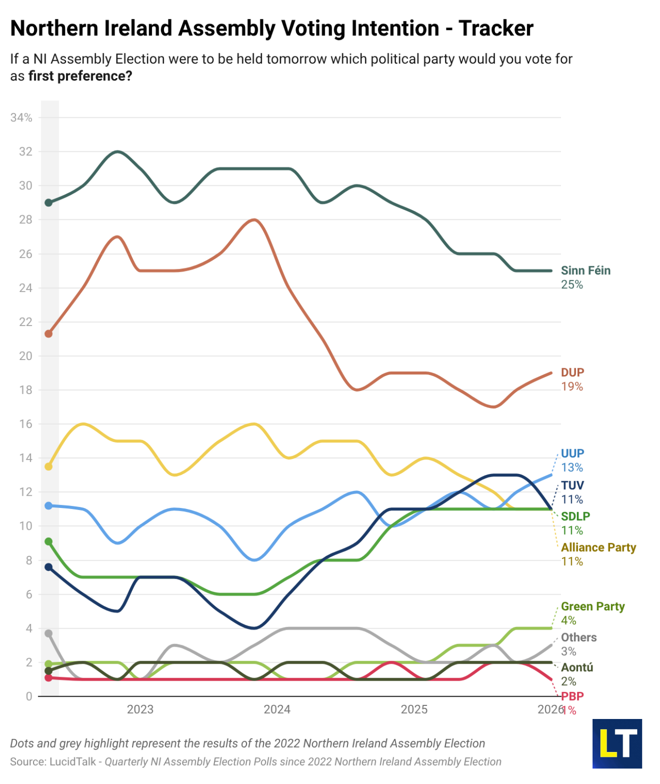 QUESTION – POLL TRACKER: All LucidTalk quarterly polls since the 2022 NI Assembly Election